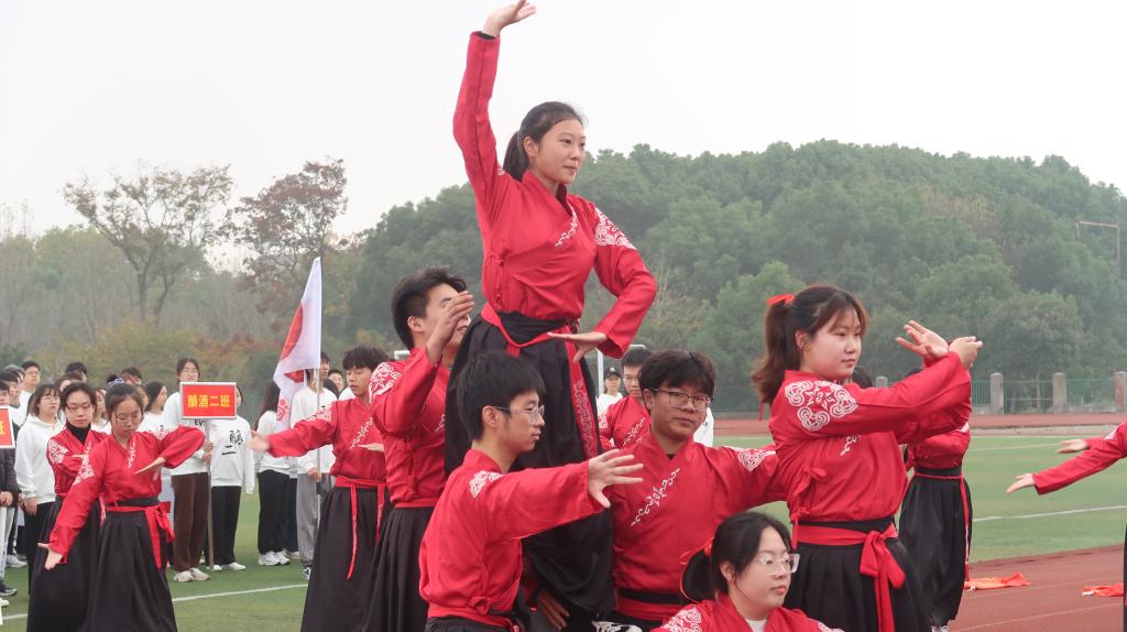 接下来大一新生代表进行了戏曲广播操展示,他们以挺拔的身姿、昂扬的斗志,向全场播撒着青春的热情,展现着生工学子的蓬勃朝气,让全场运动员们备受鼓舞。