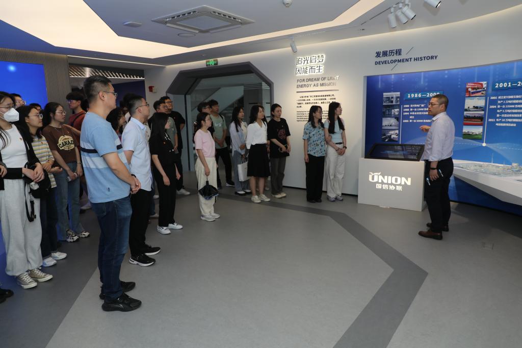 全体党员来到江苏国信协联能源有限公司交流学习,工作人员全面深入地讲解了企业的发展历程、深耕领域、重要产品及解决方案。在其带领下,党员还先后参观了智慧展示中心、研发中心与发酵车间。通过讲解聆听、图文资料观看、实地参观,学生党员切身感受到企业在以创新为引领、以科研为动力、以人才为支撑,探索绿色化、低碳化、数字化转型方面做出的改革和努力,了解了企业以生物环保新理念、生命健康新赛道为核心的发展战略新规划。