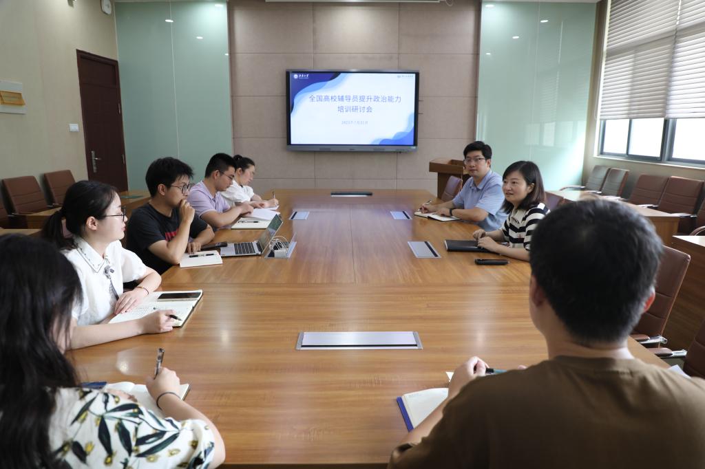 为加强辅导员政治理论学习,不断提高育人效果和工作质量。7月21日,welcome皇冠地址登录入口在B327会议室组织召开全国高校辅导员提升政治能力培训班分组研讨会。学院党委副书记、副院长林丹及全体辅导员参加会议。