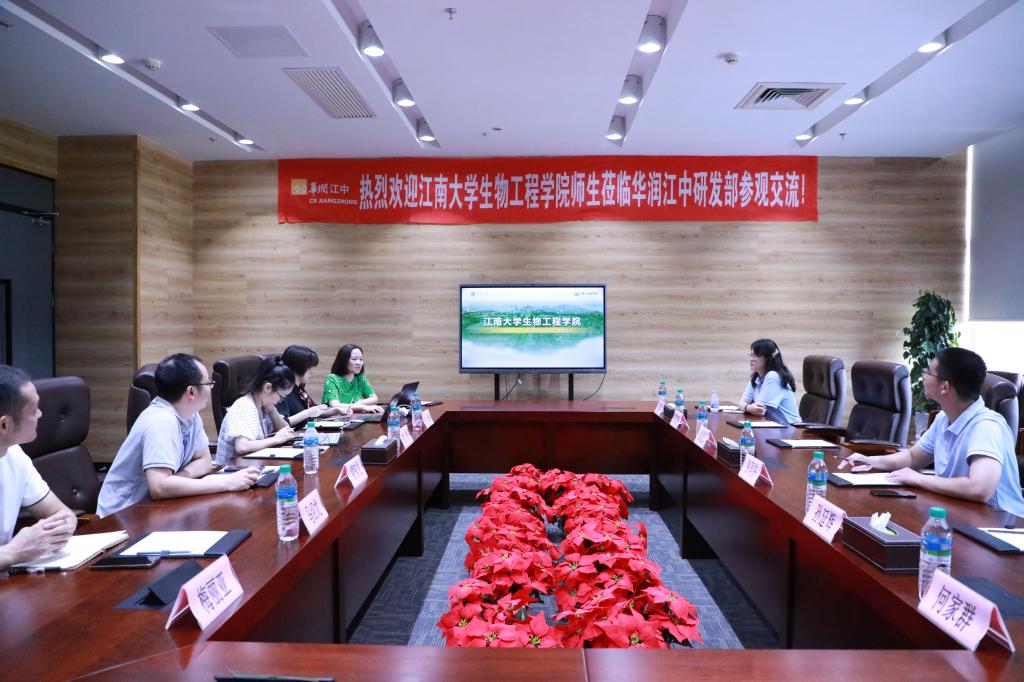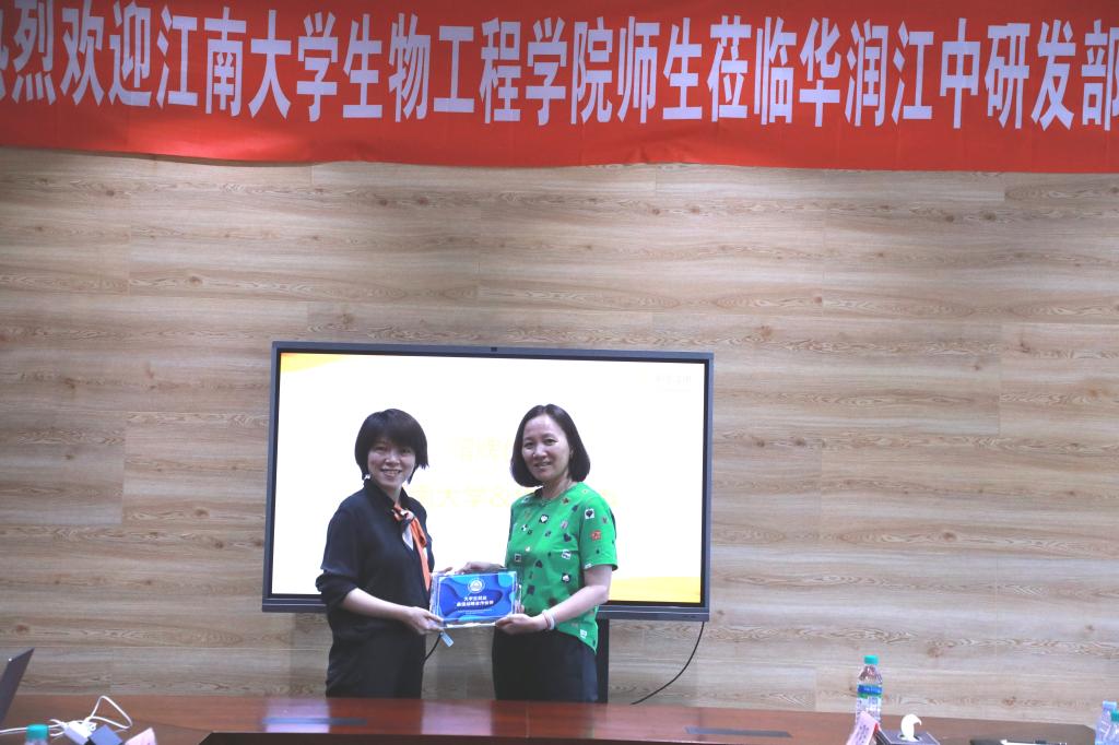 随后,程捷音一行与华润江中研发部相关负责人、校友代表进行座谈交流。程捷音就welcome皇冠地址登录入口的历史沿革、师资队伍、研究方向,以及近年来学院在人才培养、科学研究等方面取得的成绩进行了介绍。公司人力资源经理卢果详细介绍了江中制药以及华润集团的历史沿革和发展经营情况。研发部初元研究经理刘丹,介绍了公司大健康研究院的研究方向、核心优势与发酵系列产品。座谈会上,校企双方还就高校人才培养、企业用人需求、加强校企合作等开展了讨论。最后,程捷音为公司授牌“大学生就业最佳战略合作伙伴”。