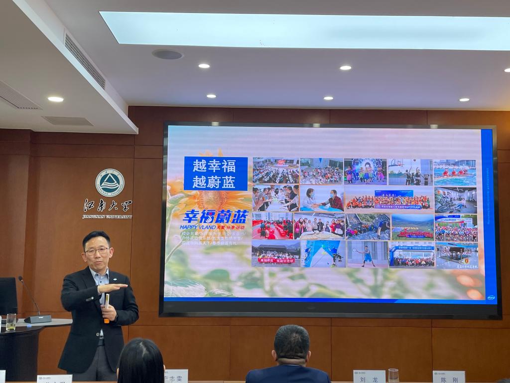 陈刚结合蔚蓝生物股份有限公司创立历程,从人的角度出发,带来《人是唯一的边界》主题报告。他首先从以和为贵、以善为本、以干为径、以学为源四个角度介绍了企业的核心价值观,并以“多元创客”“平台赋能”两大核心要素揭密了公司从创立到A股上市的关键优势。陈刚结合当今科技迅速发展、人才竞争愈发激烈的市场背景下,企业面临“招人难”“用人难”“留人难”三个难题,分享了“全球猎才,先人后事”“搭平台,建机制,定向引才”“平台赋能,激活个体”以及“以人为本,赋能幸福”的方法论。最后,他还寄语在场学生用多元领域技术知识武装大脑,做具有创新意识全面发展的大学生。