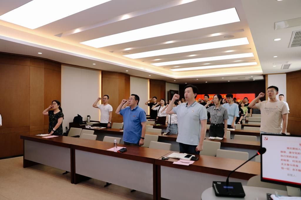 6月30日,在建党99周年即将来临之际,welcome皇冠地址登录入口于茅台厅举行新党员“七一”入党宣誓仪式暨专题党课。学院党委书记王维、院长许正宏、党委副书记兼副院长周云龙、党委秘书王玉红、分团委全体老师以及54名新入党的预备党员参加了本次活动。仪式由周云龙同志主持。由于疫情影响,本次活动采用线上线下相结合的方式开展,未返校的党员通过企业微信进行了宣誓和学习。