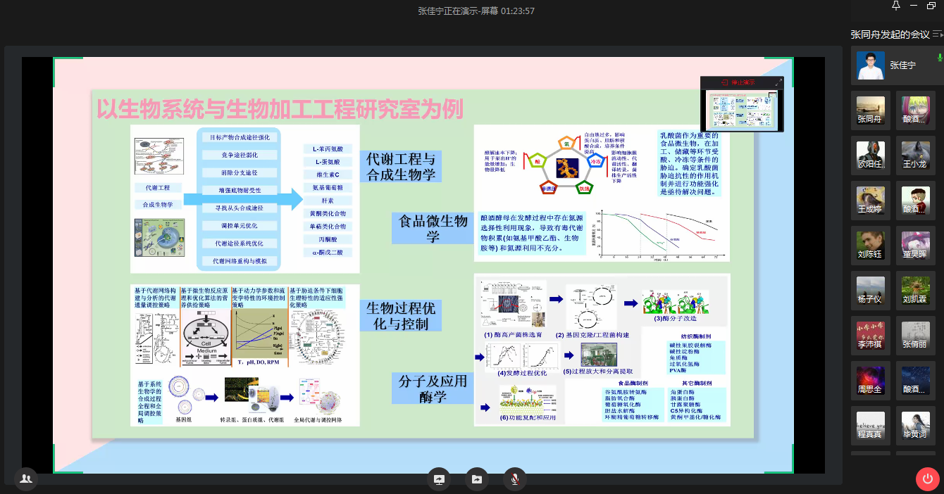 分享会最后,张同舟老师也对同学们的专业学习和未来发展提出了建议指导,希望同学们能够不负韶华,脚踏实地、求知笃学、探索创新,做一名有梦想、有规划、有行动的善于实践,勇于创新的生工人。