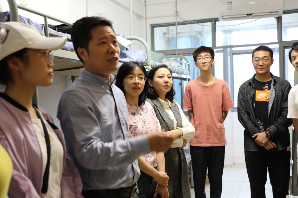 傍晚,学院领导老师、班主任老师及副班主任们,共同来到了李园,关照新生们开学第一天的生活。