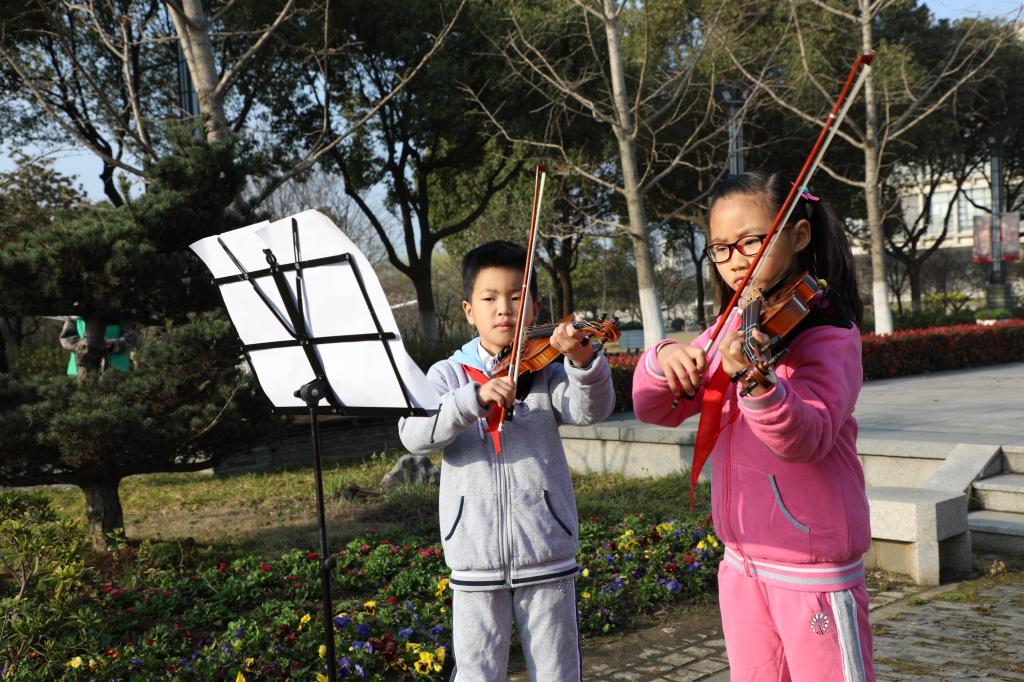 张佳然、李奕君两位小朋友表演小提琴合奏《我的祖国》