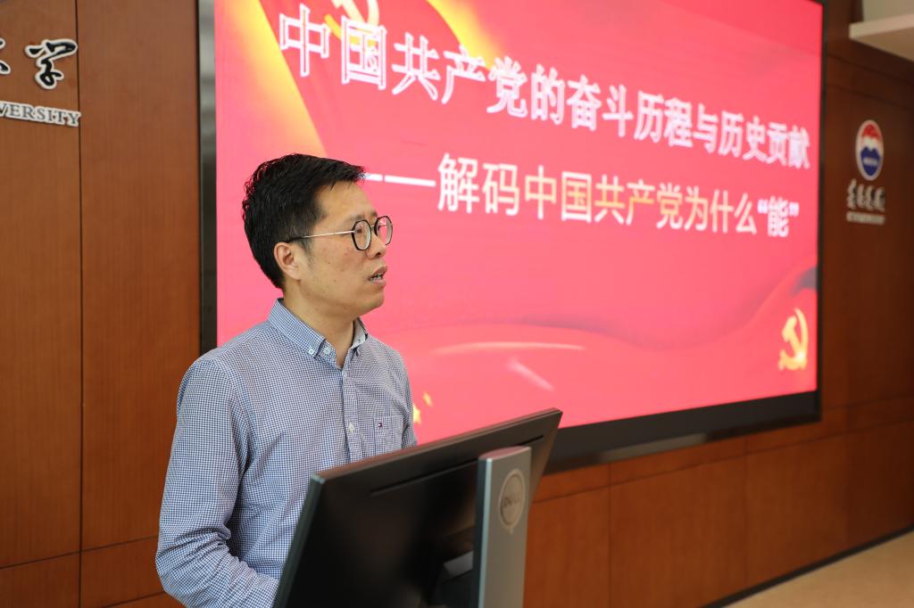周云龙同志主要围绕党史学习教育的根本遵循、党的百年光辉历程的基本脉络、党的历史贡献和学习党史的现实经验启示等四个方面展开。重点指明要以习近平总书记提到的“三个必然”要求理解开展党史学习教育的重大意义。同时,基于开天辟地、改天换地、翻天覆地、经天纬地的党史分期,借助老照片、小故事,用生动形象的语言,讲述了在党的带领下,中华民族从站起来到富起来再到强起来的历史飞跃。分析了强大的领导能力、科学理论的指导、人民群众的支持以及“打铁必须自身硬”的底气,是“中国共产党为什么能”的背后深层原因。