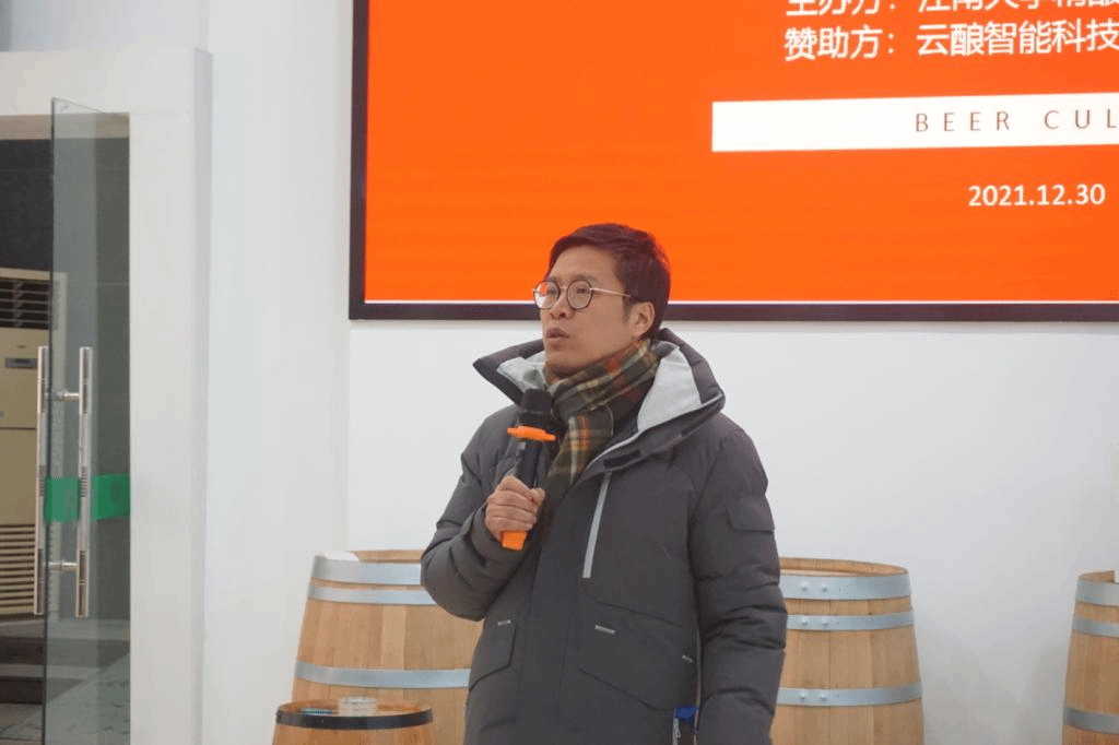 活动开始,周云龙书记首先对酿酒俱乐部的迎新年活动的成功举办表示祝贺,他指出welcome皇冠地址登录入口是中国酿酒工程师的摇篮,同学们要传承老一辈酿酒大师的发酵精神,身体力行“勇于创新、善于实践”的精神。周书记一番话鼓舞了所有在场人的信心。随后,精酿俱乐部主席郜子航给大家汇报了本学期的工作并做出了来年展望。过年的一年中,俱乐部同学们完成了啤酒车间的装饰美化,进行了丰富而充满趣味的果啤酿造比赛与品鉴活动,俱乐部黑天鹅拉格和红色艾尔两支作品参加了2021CBC中国国际啤酒挑战赛,并最终获得天禄奖一星的好成绩。俱乐部指导老师及品酒部同学为同学们自酿的果啤产品进行了品鉴,并为果啤酿造比赛中表现优秀的同学颁奖,以资鼓励。展望未来,俱乐部将继续定期开展酿酒及品酒活动,继续参加国内外啤酒相关赛事,进一步拓展与国内酿酒专业兄弟高校的交流与合作。