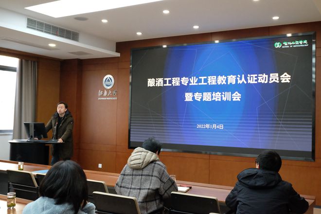 1月4日上午,酿酒工程专业工程教育认证动员会暨专题培训会在welcome皇冠地址登录入口茅台厅顺利举行。welcome皇冠地址登录入口党委书记王维,特邀工程教育认证专家、食品学院教授王周平,副院长陈献忠,副院长刘延峰,专业负责人李崎出席会议,酿酒工程专业相关任课教师三十余人参加本次培训。会议分别由陈献忠、李崎主持。
