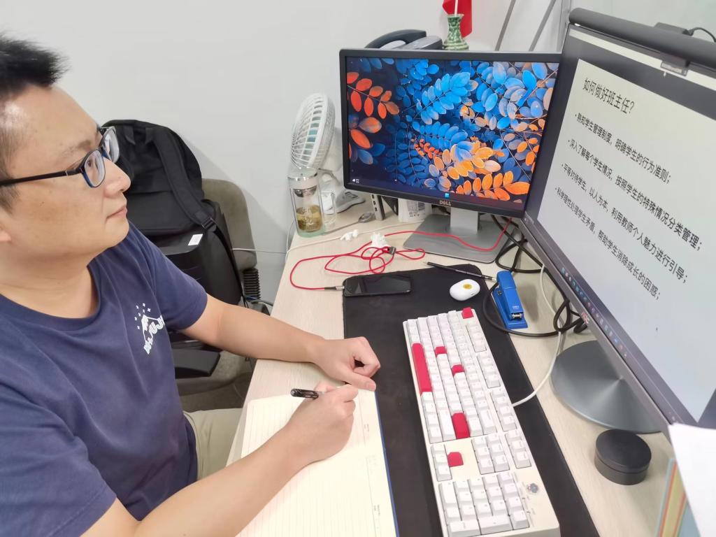 随后,学院优秀班主任代表穆晓清围绕班主任工作抓手、工作定位、工作实践,分享班主任工作经验和心得。他以真实的案例为切入点,讲解依据不同年级学生特点、分段分类指导学生发展的重要性,同时提出作为思想引领者、班级工作组织者、心理健康疏导者和职业发展规划者的班主任,应该在思想和专业方向上引领学生,做学生生活的贴心人、学业的引路人。同时提出在班主任工作实践中,应平等对待学生,科学理性处理学生矛盾,帮助学生消除成长的困惑。