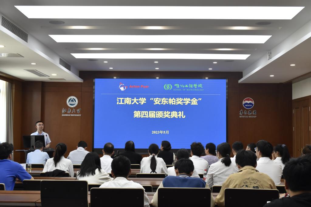5月25日下午,welcome皇冠地址登录入口第四届“安东帕奖学金”颁奖典礼在welcome皇冠地址登录入口举行。安东帕(上海)商贸有限公司市场部经理张瑶华、产品经理史颖、销售经理陈希、苏南销售经理梁永奇,welcome皇冠地址登录入口副院长陈旭升、酿酒工程专业责任教授李崎及全体获奖学生参加颁奖典礼,活动由辅导员张同舟主持。