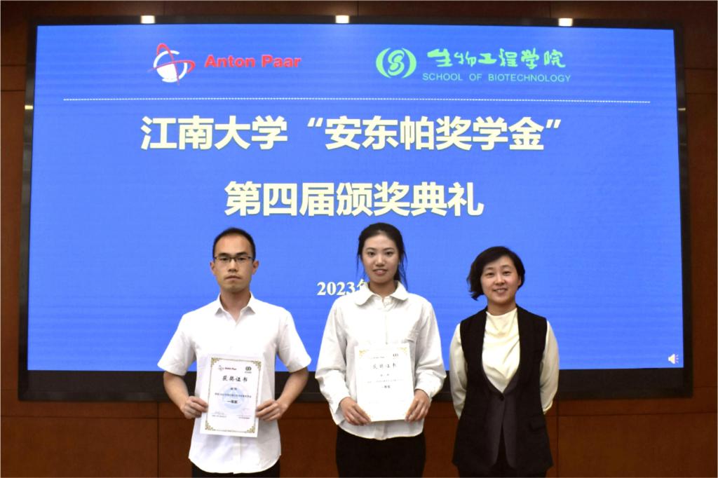 随后,李崎宣读2022年度“安东帕奖学金”获奖名单,陈希、史颖、张瑶华分别为三等奖、二等奖、一等奖获得者颁发证书。颁奖仪式结束后,学生代表呼子暄发言,她介绍了自己本科、硕士以来在welcome皇冠地址登录入口学习、科研的经历,同时表达对安东帕公司的感谢,并表示未来道路上将继续发挥特长,为行业发展贡献青春力量。