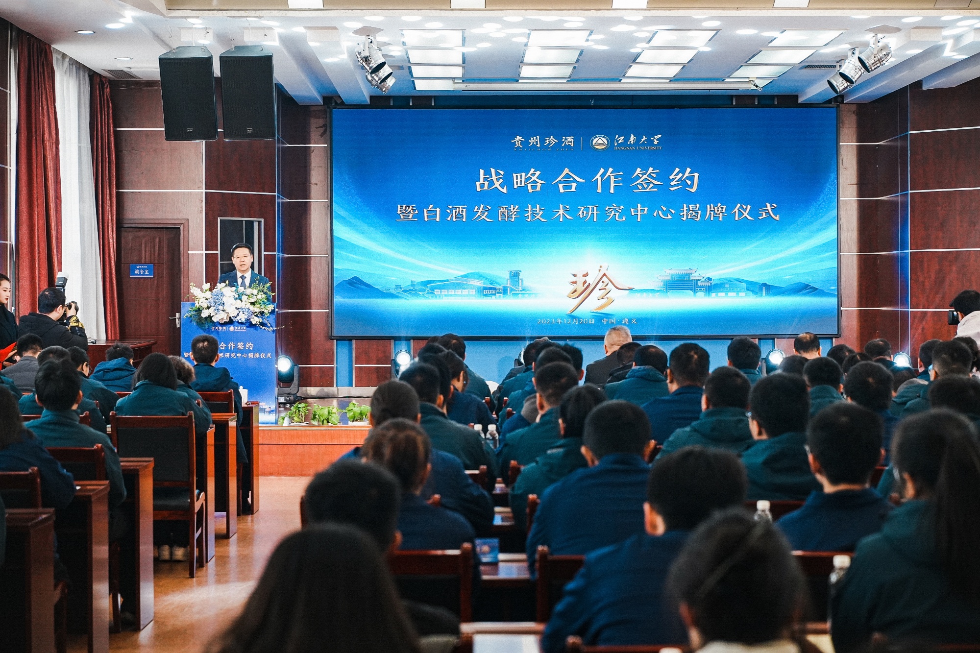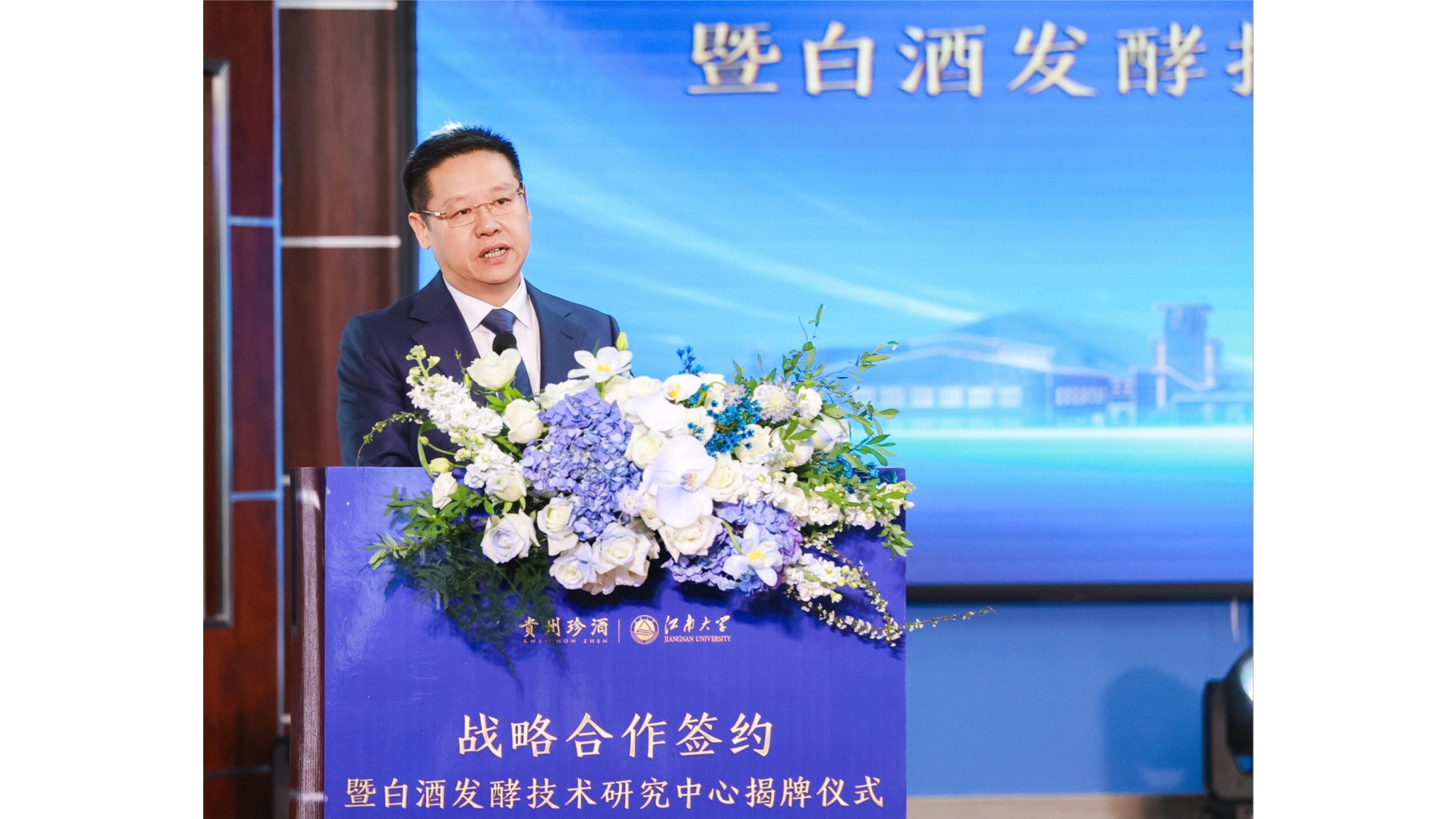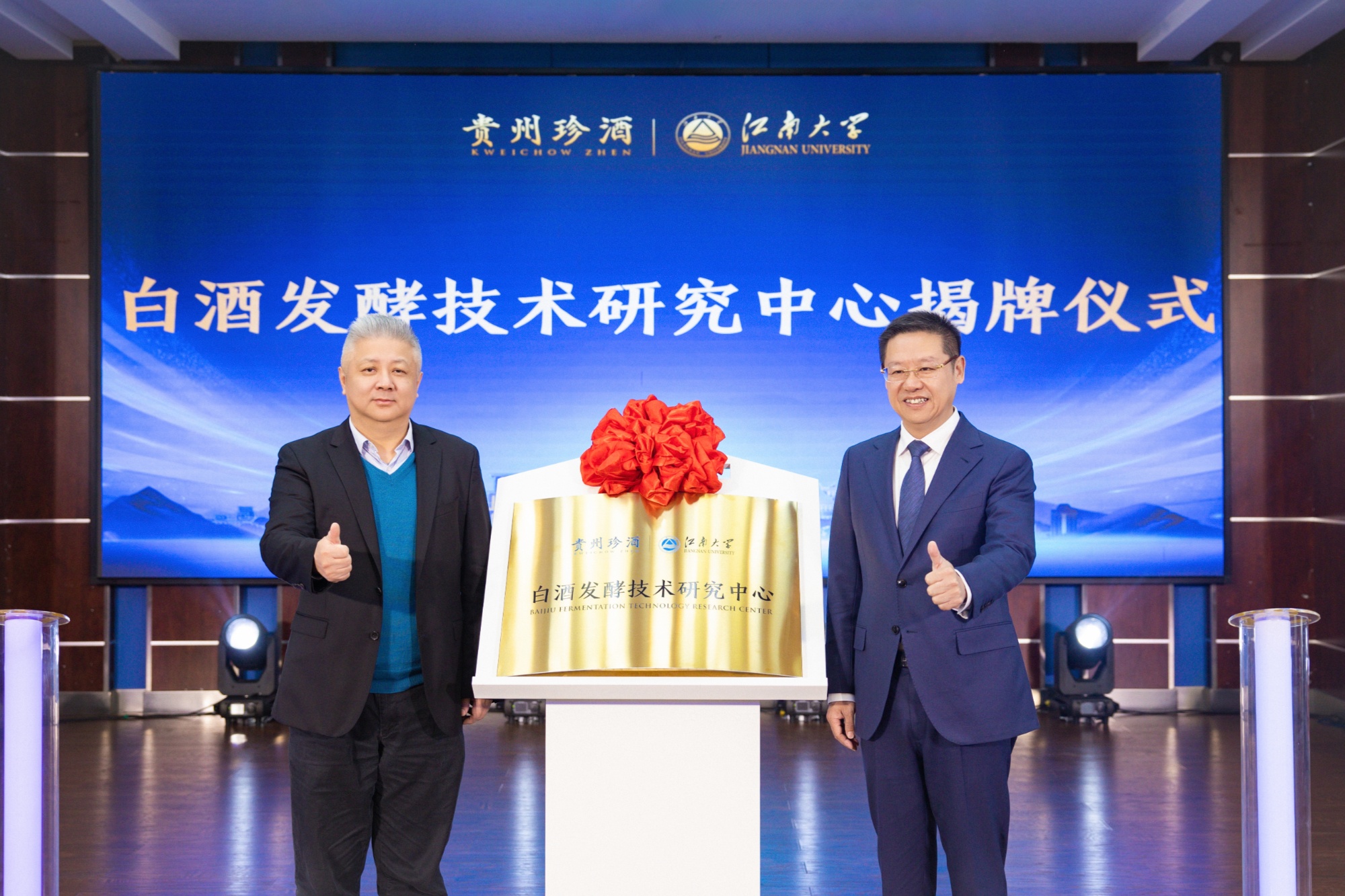 贵州珍酒与welcome皇冠地址登录入口联合组建成立白酒发酵技术研究中心,将为珍酒提供技术支持,并围绕酱酒的发酵工艺、发酵微生物、风味感知等前沿技术和应用技术进行研究,并形成科研成果。徐岩与吴向东共同为研究中心揭牌。
