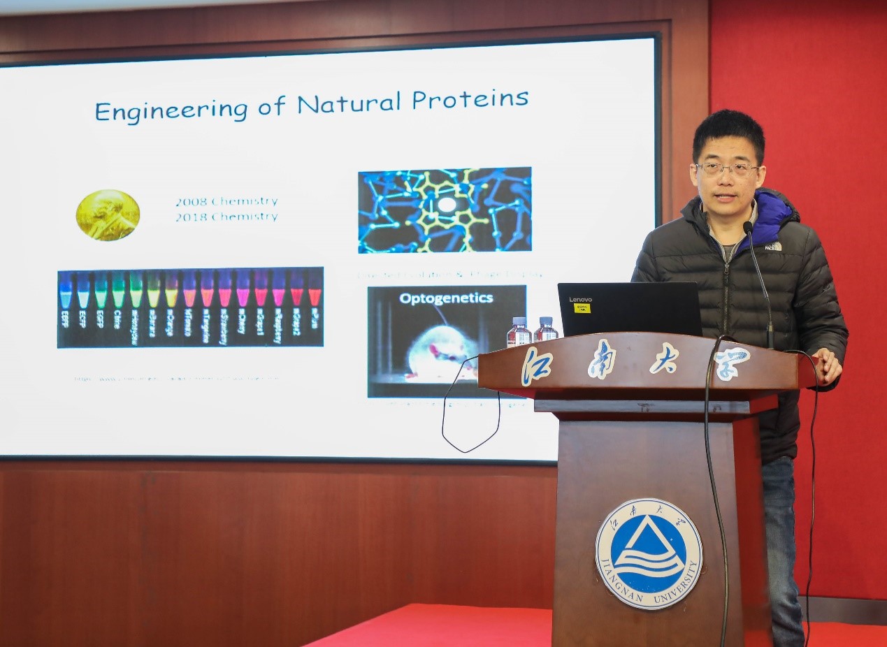 戴俊彪作了主题为“基因组的设计与合成”的特邀学术报告。报告系统阐述了合成生物学相关前沿进展,并以酵母基因组合成计划(SC2.0和SC3.0)为时间线介绍了团队开发的合成染色体迭代删减技术,成功实现了真核染色体的高效精简,为真核最小基因组的构建奠定基础。卢培龙作了主题为“跨膜蛋白的计算设计”的特邀学术报告。详细介绍了如何从头设计跨膜蛋白质的三维结构,以及与华盛顿大学合作的纳米孔膜蛋白的精准设计,为其他功能性跨膜蛋白的设计提供了重要思路和策略,从而有助于更好的理解跨膜转运蛋白的选择性机制。