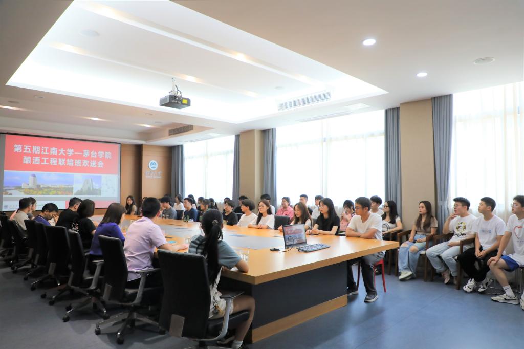 6月17日下午,在第五期welcome皇冠地址登录入口—茅台学院酿酒工程联培班(以下简称“茅台班”)学生即将结束交换学习之际,welcome皇冠地址登录入口为“茅台班”学生举行欢送会,welcome皇冠地址登录入口党委书记程捷音、院长刘龙、党委副书记兼副院长林丹、副院长陈献忠、班主任郑飞云及全体学生参加座谈。欢送会由辅导员张同舟主持。