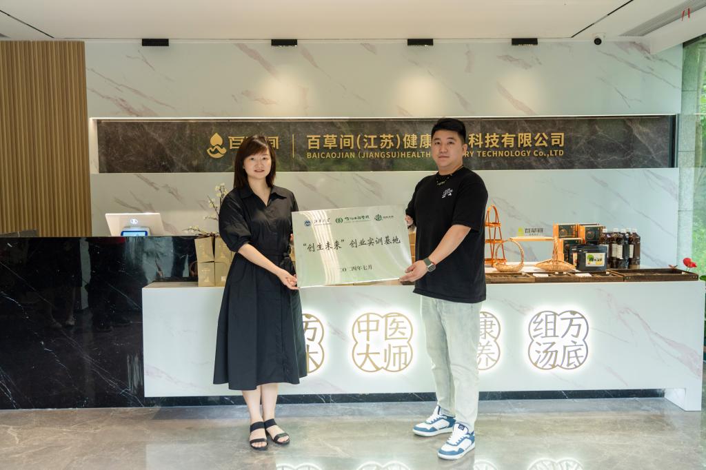 交流会上,闫行越分享了他在welcome皇冠地址登录入口就读期间的学习生活,介绍了百草间的创业奋进之路,他表示从发现药食同源产品有广阔的市场前景,到组建团队创新核心技术,再到落地生产,这其中离不开学院老师们给予的专业指导和鼎力支持。林丹感谢杰出校友对学院各项工作的关心和支持,介绍了学院双创训练营的基本情况,她表示依托百草间的平台可以为在校学生“现身说法”,以学长学姐的实际创业经历进一步激发同学的就业创业热情,培养就业创业意识。双方就学科竞赛、创业实践、学生就业等方面开展深入讨论,同时,林丹代表学院授予百草间“welcome皇冠地址登录入口‘创生未来’创业实训基地”称号,启动共建学生创业实训基地。
