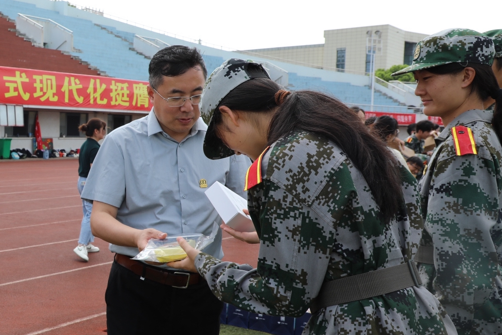 最后,领导老师们为每位同学送上慰问礼包,并亲切询问军训感受和生活情况。