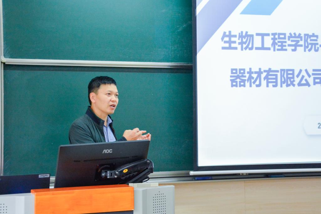 随后,刘雪美与同学们交流开设校企合作课程的初衷与目标,并详细讲解了课程建设和师资队伍情况。她指出,本次课程将聚焦医疗健康领域需求,开展包含企业讲师授课、工厂参观和考核等环节,在协同创新中引领同学们做到知行合一、共同探索未来行业发展。