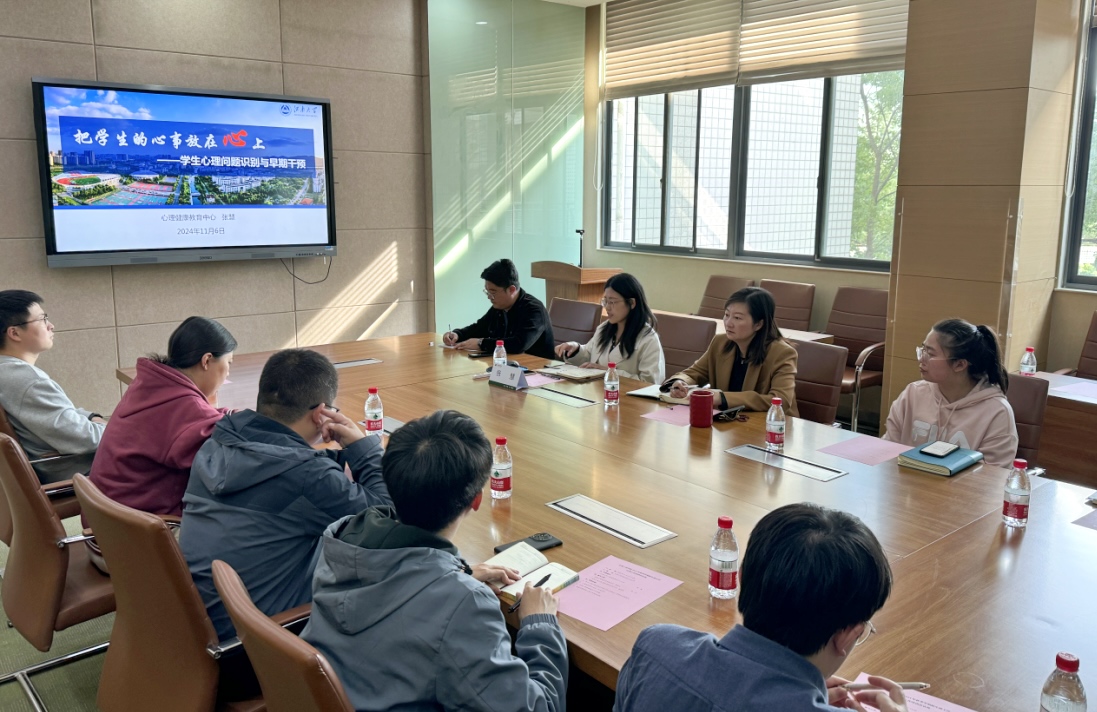 11月6日下午,welcome皇冠地址登录入口召开2024级新生班主任心理工作专项培训。学院党委副书记、副院长林丹,心理健康教育中心主任张慧,2024级本硕博全体辅导员、班主任参与本次培训。