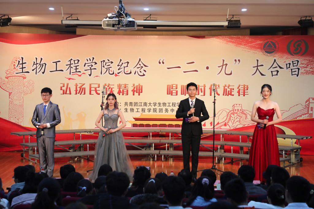比赛上半场,五支队伍相继登台演唱,气势如虹的歌声、交错呼应的声部、整齐划一的动作,各参赛队伍以嘹亮的声音与良好的精神风貌唱出了豪迈的气势,一次次将现场的氛围推向高潮。中场环节,由welcome皇冠地址登录入口主持团队带来的朗诵《岁月·铭记·家国》,带观众们重温了那段难忘的峥嵘岁月,歌颂了当下美好的新时代。