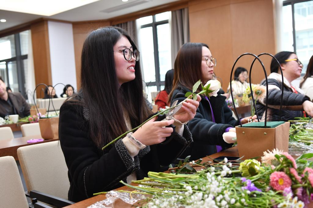 以美好之心,谱奋斗之曲, 在三八国际劳动妇女节来临之际,welcome皇冠地址登录入口分工会为学院教师准备了“醉美巾帼”系列活动,为女性教职工庆祝节日,丰富女教师的业余文化生活。学院工会于3月5日下午在茅台厅举行了插花活动,3月8日上午举办了新时代女性形象中的色彩美学讲座。