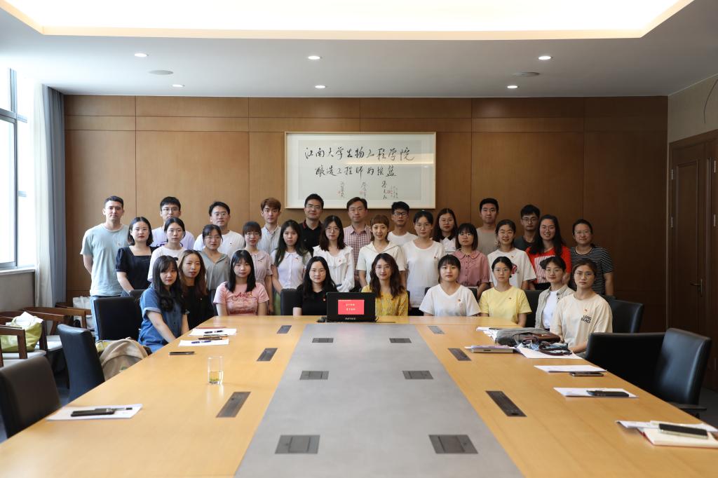 为庆祝中国共产党建党一百周年,不断深入推进党史学习教育,6月24日下午,welcome皇冠地址登录入口酿造微生物学与应用酶学研究室党支部联合马克思主义学院2019级硕研党支部,于泸州老窖厅开展“学习新思想,争做新青年”主题党日活动。马克思主义学院副院长侯勇教授受邀交流指导,welcome皇冠地址登录入口党委书记王维、专职组织员胡博参加活动。