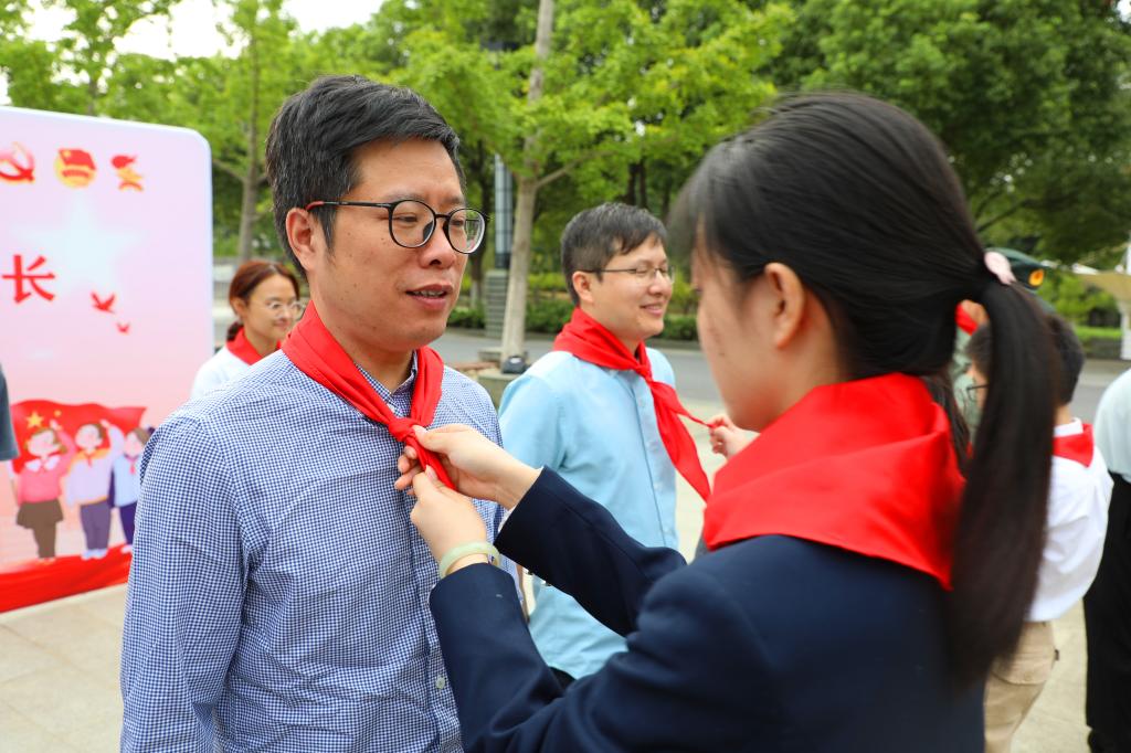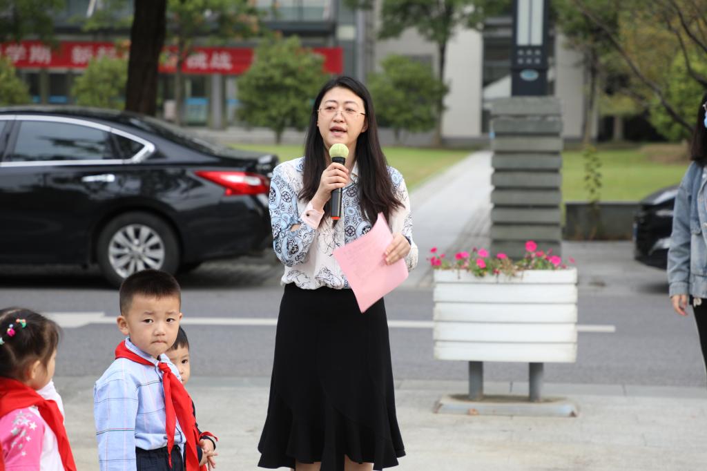 活动在小朋友们给家长敬献红领巾中开始。随后,国旗班的大学生们带领参加活动的小朋友,大手拉着小手,共同组建护旗方阵,昂首阔步,护卫国旗走至旗杆下。伴随着雄壮的《义勇军进行曲》,小学生升旗手与国旗班大学生升旗手共同将五星红旗升至旗杆顶端,成功完成护旗、升旗任务。
