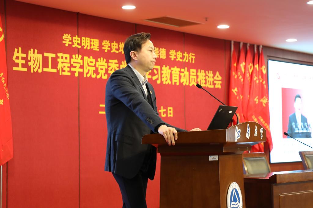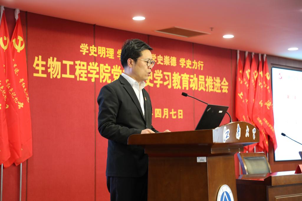 4月7日下午,welcome皇冠地址登录入口党委党史学习教育动员推进会在图书馆五楼报告厅举行。会议认真学习贯彻习近平总书记在党史学习教育动员大会上的重要讲话精神,落实上级决策要求,对学院党委党史学习教育进行全面动员部署。welcome皇冠地址登录入口党委书记王维、院长许正宏,院党委委员、粮食发酵工艺与技术国家工程实验室常务副主任李兆丰,院党委副书记周云龙、副院长陈献忠出席会议。师生党支部全体委员、党员代表,以及经开区太湖国际社区党委嘉宾参加活动。会议由学院党委专职组织员胡博主持。