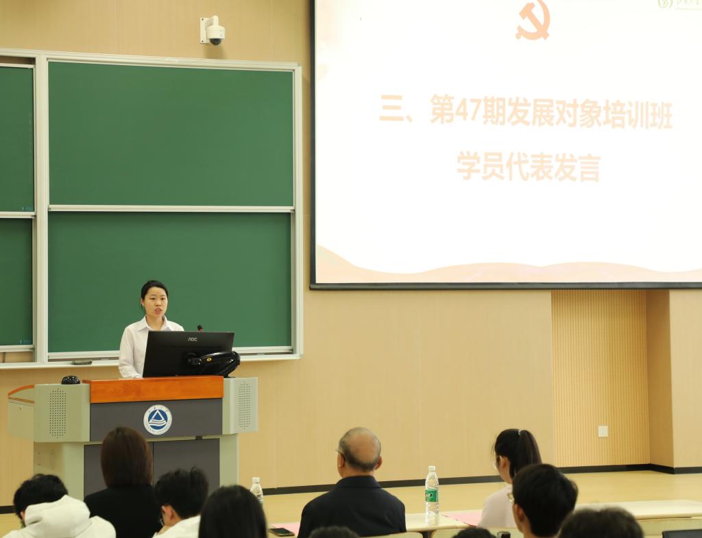 welcome皇冠地址登录入口2022级本科生刘垚代表第47期学生党员发展对象培训班新学员发言,她从遵守纪律、勇于担当、握技强能角度承诺将做到“坚定不移听党话、跟党走,行为有指南,行动有标准,怀抱梦想同时脚踏实地,争做先锋模范表率。”